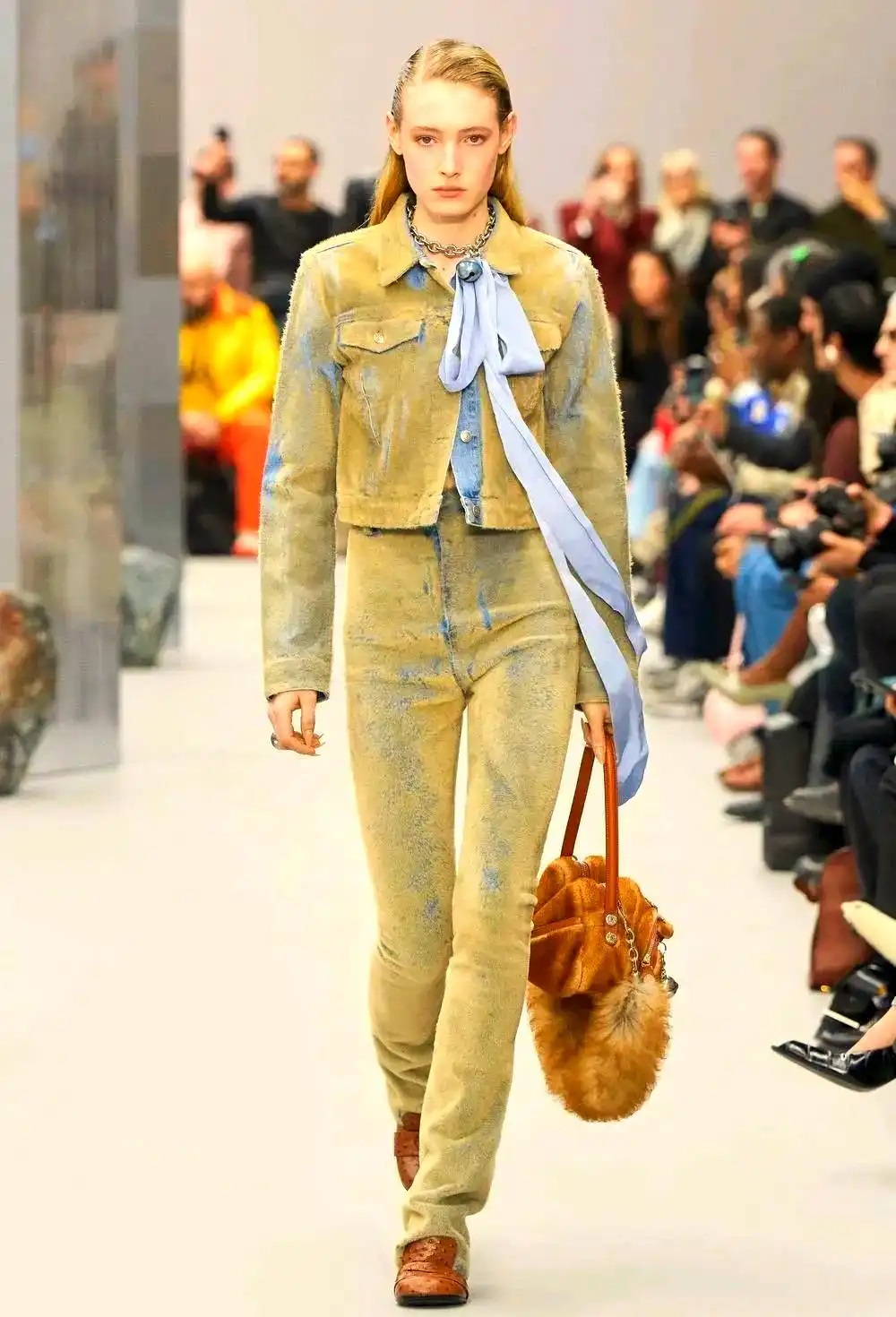在2025/26秋冬時裝周上,牛仔元素實現(xiàn)視覺與觸覺的雙重突破。通過纖維混紡的創(chuàng)新,設(shè)計師不僅在視覺上帶來了全新的體驗,更讓穿著者感受到前所未有的舒適與質(zhì)感。從T臺上走下來的每一套造型,都讓人忍不住伸手去感受那不一樣的觸感與視覺沖擊。這種突破不僅停留在表面,更深入到穿著者的內(nèi)心,帶來了一場關(guān)于時尚的全新體驗。